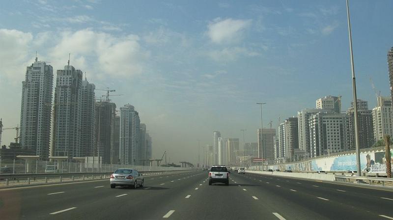 | A deceiving view of one of the main speedways. Traffic jams are often the rule in Dubai. | |
